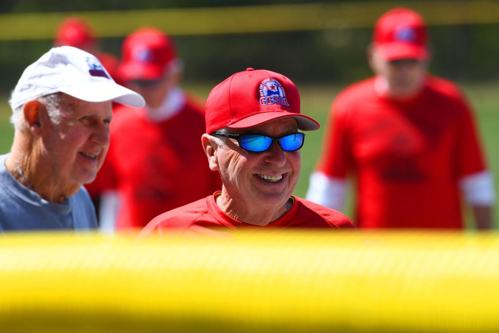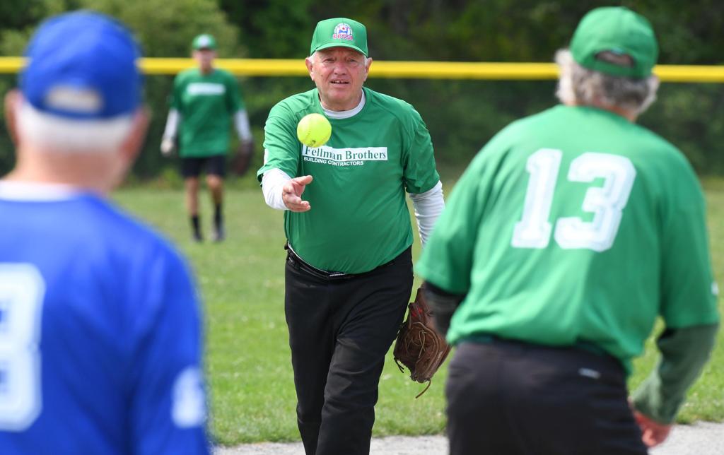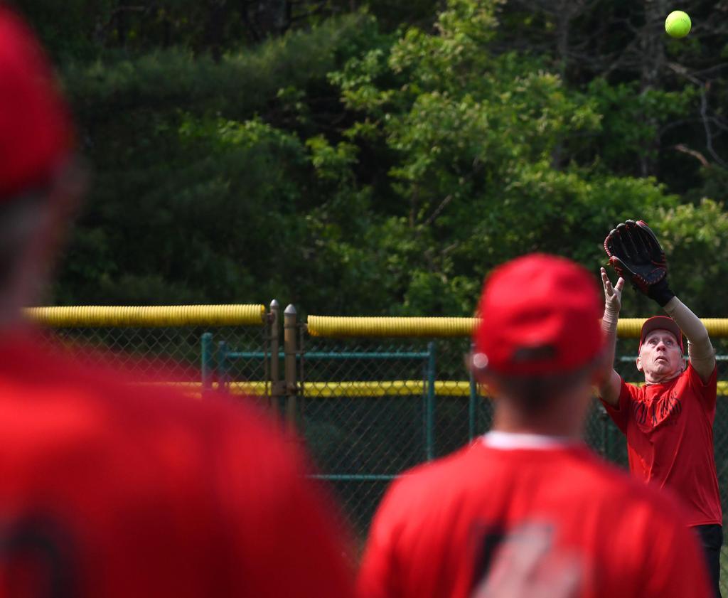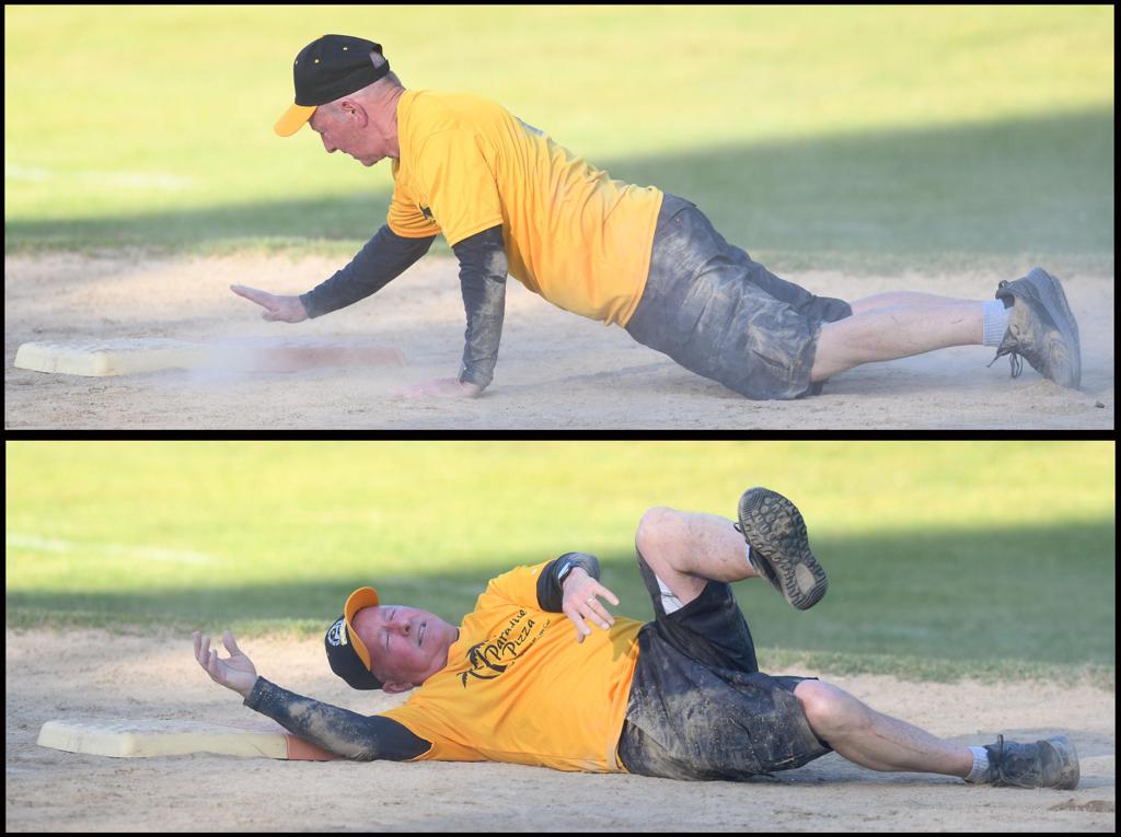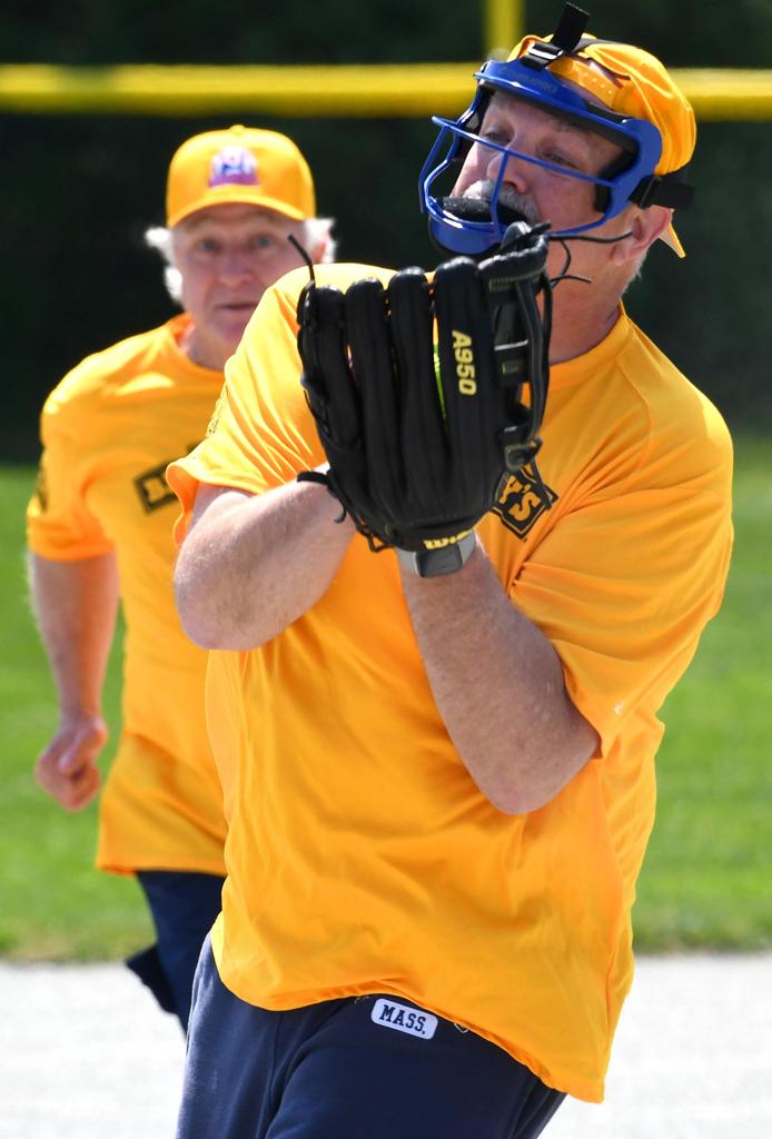 John Duryea makes the catch, Bob Fawcett looks on. D3
