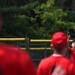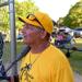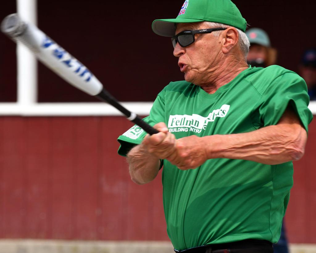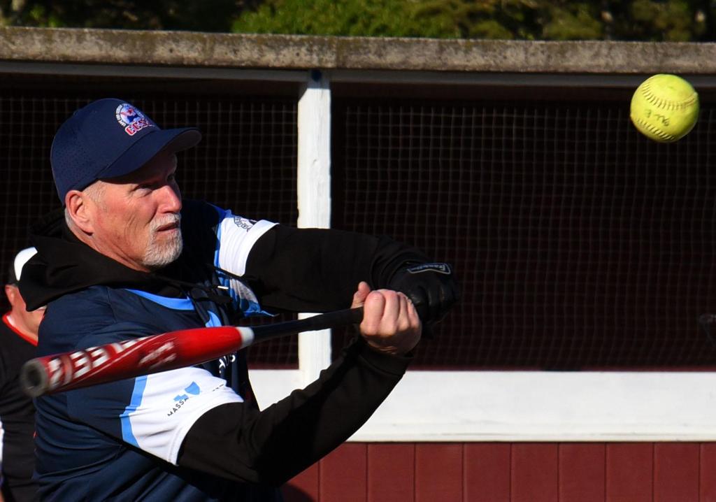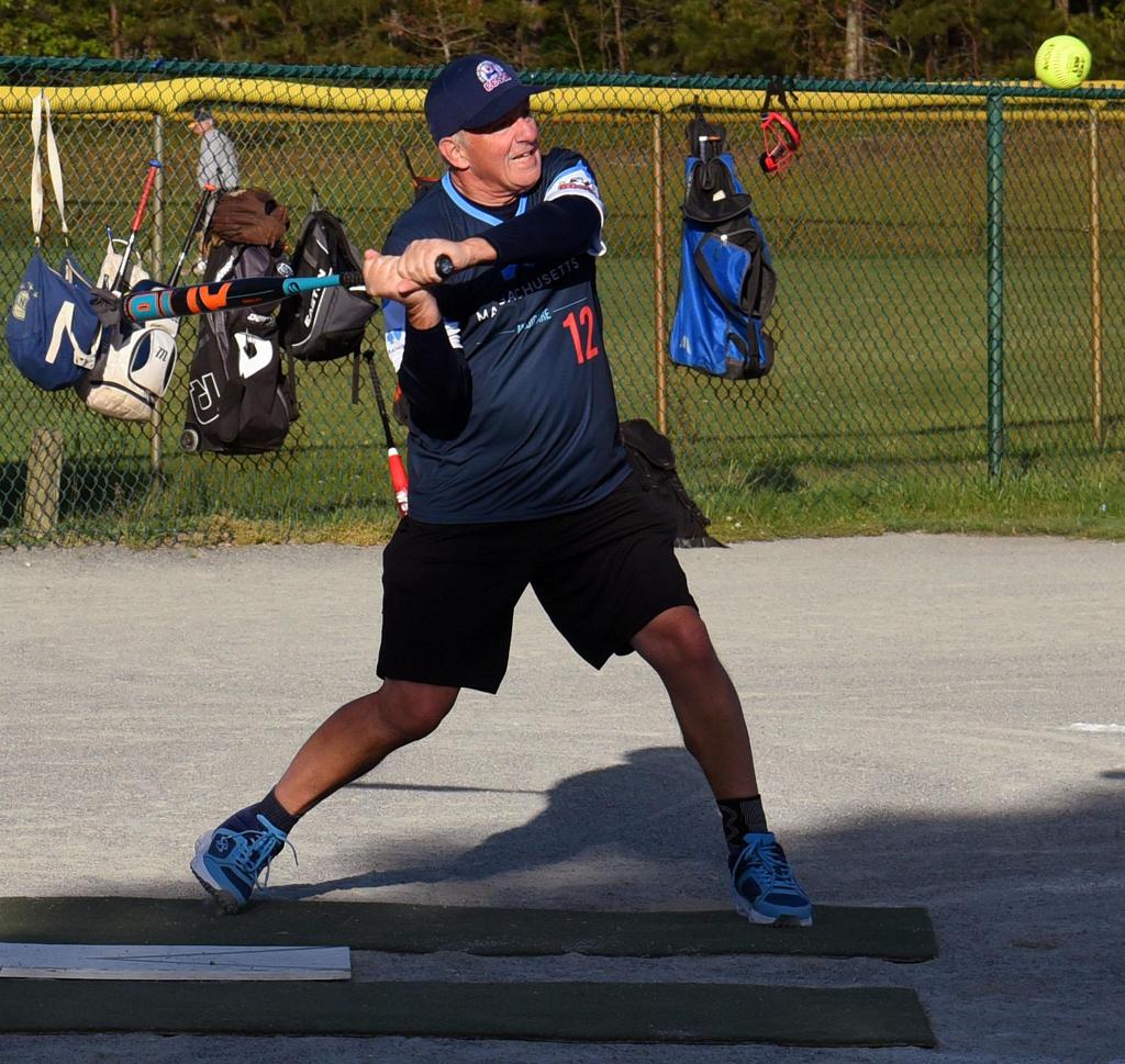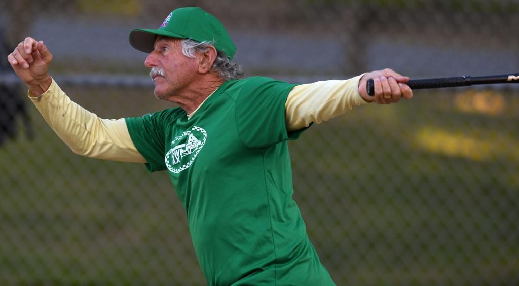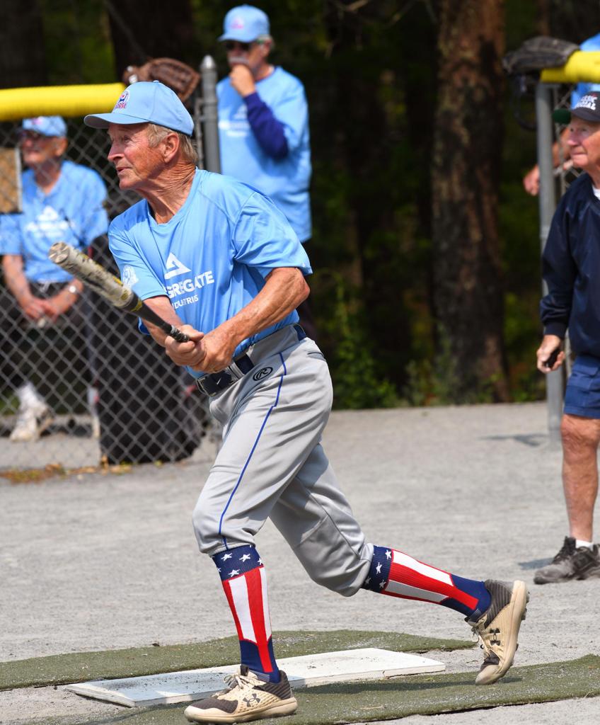 Al Sharp looking to go yard. Umpire Jim DeVoe looks on.