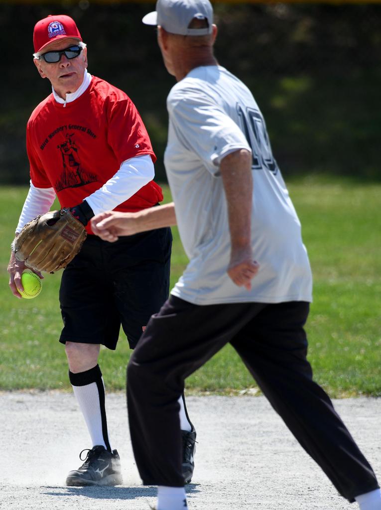 Joe Vigliotte flips ball to Jim Gresis for third out. D3